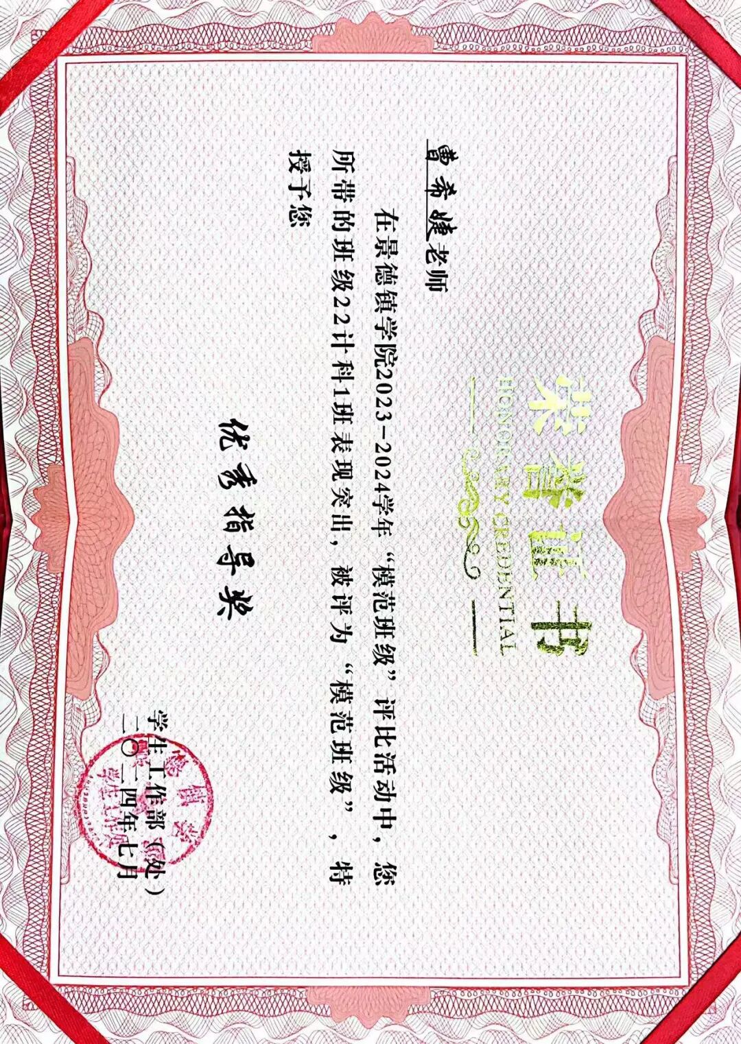 在曹希婕同志的带领下,所带班级在三年间取得了丰硕成果:成功创建校级模范班级2个校级五四红旗团支部2个、校级文明班级1个并在校级广播体操比赛中荣获一等奖;在2024年暑期“三下乡”社会实践活动中,她指导的学生团队荣获省级优秀云游作品、省级优秀团队及全国示范性团队等多项荣誉。