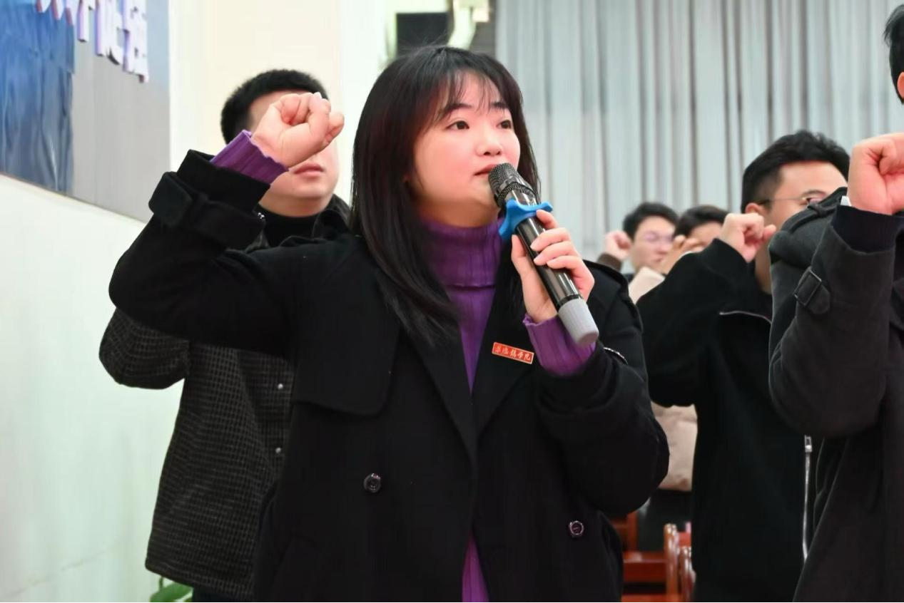 随后,学工部(处)思政科科长龚媛带领全体人员重温辅导员誓词。铿锵有力的誓言回荡在会场,不仅彰显了辅导员队伍坚守育人初心、履行育人使命的坚定决心,也进一步强化了大家的责任意识与担当精神。